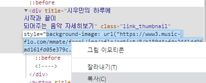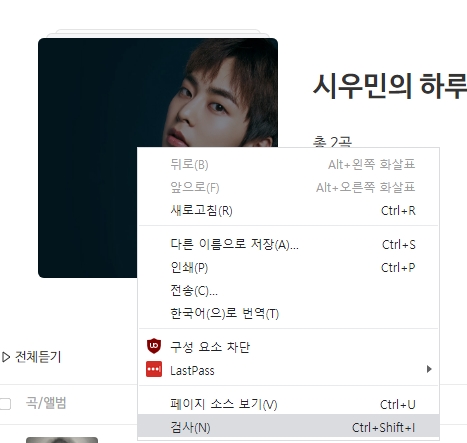2) 원하는 사진 위에 마우스를 놓고 오른 클릭 - '검사'를 누름